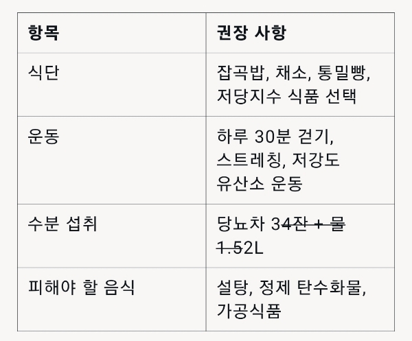 당뇨차만 마신다고 해서 혈당이 마법처럼 조절되는 건 아닙니다. 균형 잡힌 식단과 규칙적인 운동이 함께해야 효과를 극대화할 수 있습니다. 예를 들어, 흰쌀밥 대신 잡곡밥을 먹고, 채소와 식이섬유가 풍부한 음식을 섭취하는 게 좋습니다. 또한, 하루 30분 정도의 가벼운 걷기 운동도 혈당 관리에 큰 도움이 됩니다.