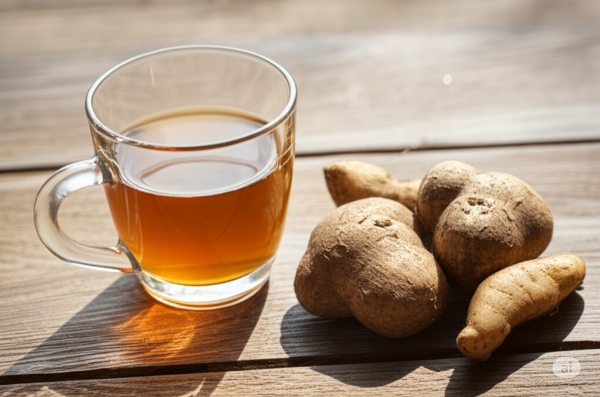돼지감자차는 구수한 맛이 특징인 차로, 이눌린이라는 성분이 혈당을 안정시키는 데 도움을 줍니다. 이눌린은 소화 과정에서 천천히 흡수되어 혈당이 급격히 오르는 것을 막아줍니다. 돼지감자차는 말린 돼지감자 뿌리를 끓여 만들며, 대추나 구기자를 함께 넣으면 맛이 더 풍부해집니다.